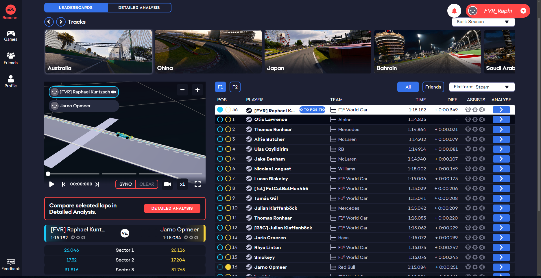 Wir nutzen Tools wie Racenet, um deine Daten genau auszuwerten: