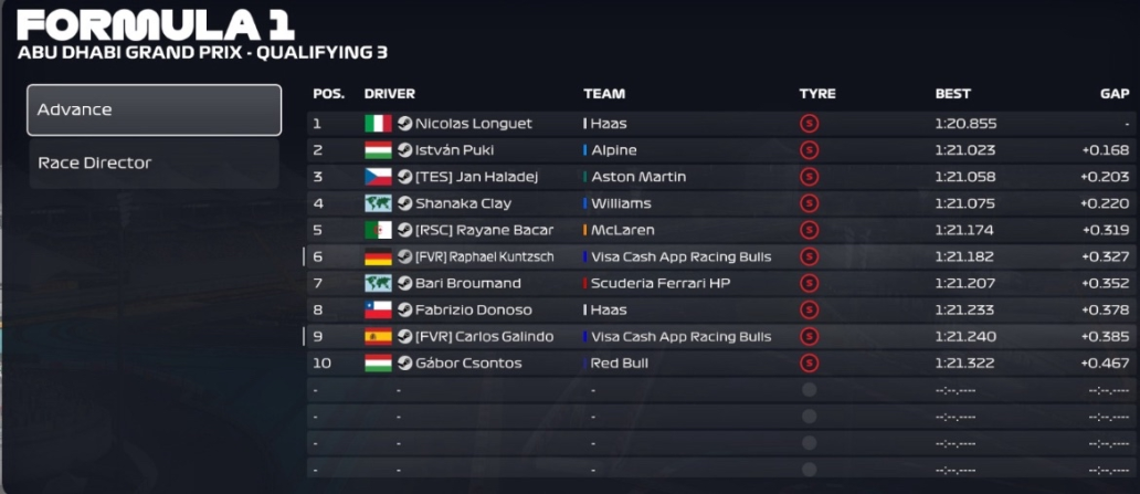 In den F1 Games ist Lennart in F1 25 für PSGL F3 eingeteilt worden. Leider wurde er nur als Reservefahrer eingeteilt und ist deswegen nie ein Rennen gefahren. Bei der Vorbereitung für die Möglichkeit eines Rennens waren seine PB´s allerdings immer auf Niveau der Top 3-5 Fahrer.